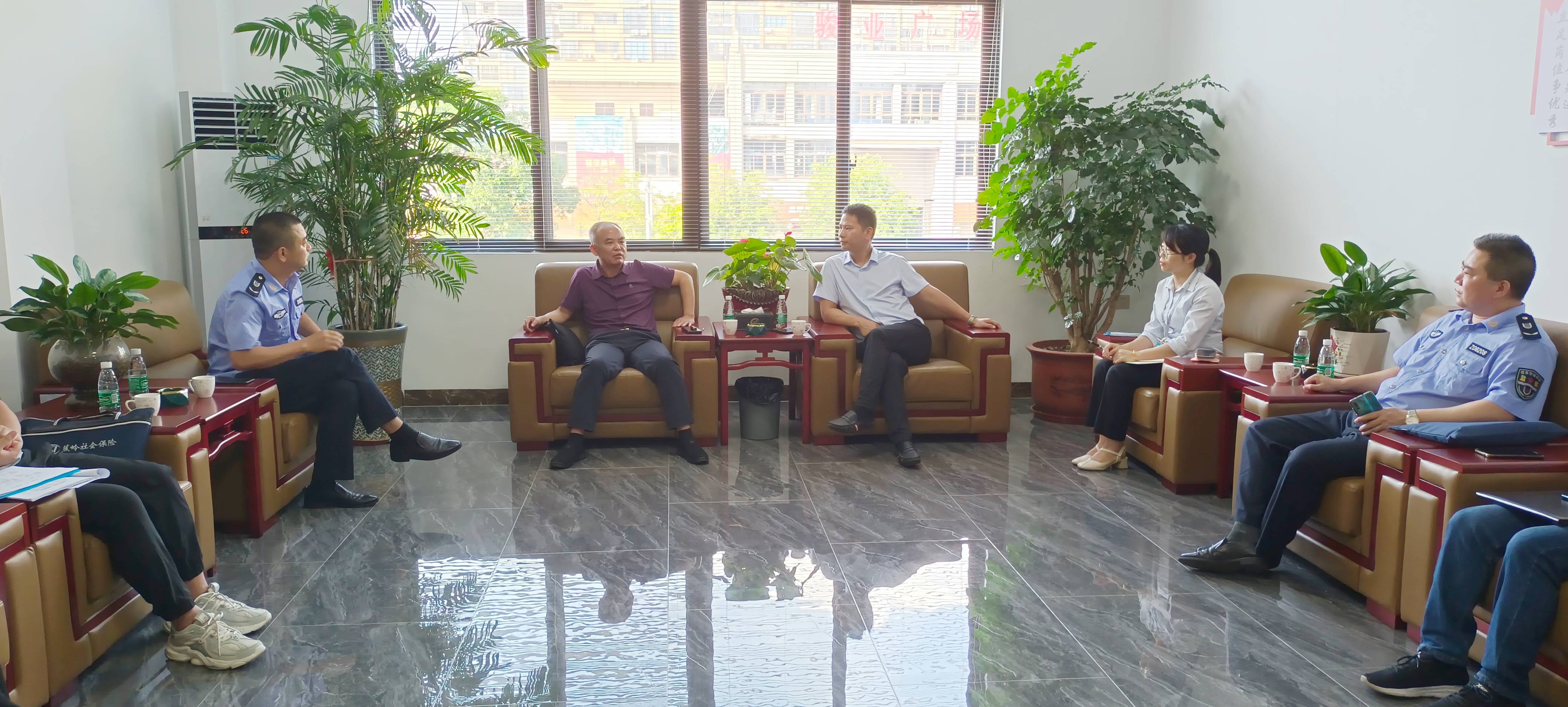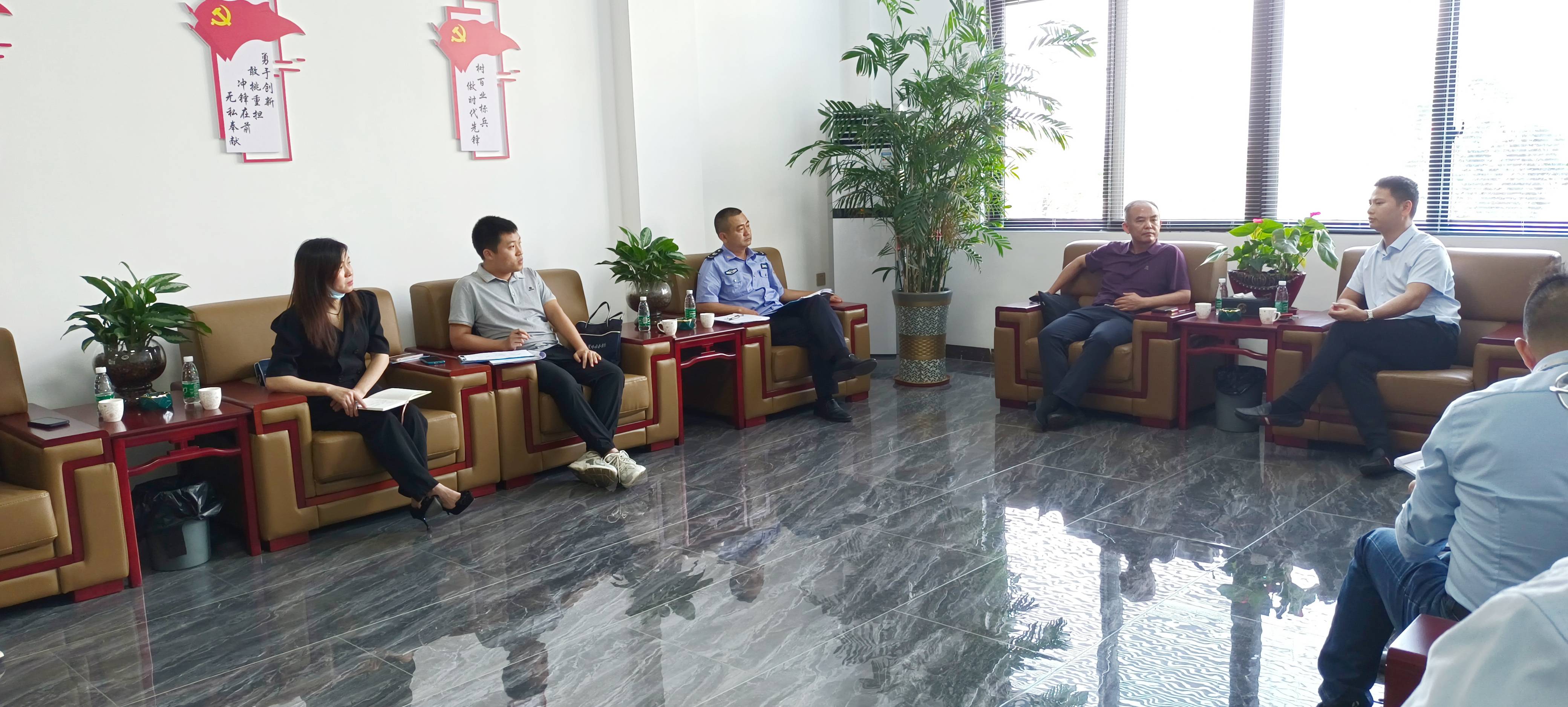 2023年5月25日下午,蕉嶺縣人社局黨組書記、局長江斌、縣人社局副局長王建強(qiáng)帶領(lǐng)社保局、勞動監(jiān)察執(zhí)法大隊(duì)、就業(yè)中心工作人員一行到訪海龍化工總部,開展2023年“人社局長千企行”暖企助企調(diào)研活動,傾聽企業(yè)所需所盼,為企業(yè)排憂解難。公司總經(jīng)理賴仕海、副總經(jīng)理龍偉國、人力資源總監(jiān)余佛龍、財(cái)務(wù)經(jīng)理陳杏娜出席此次座談會。